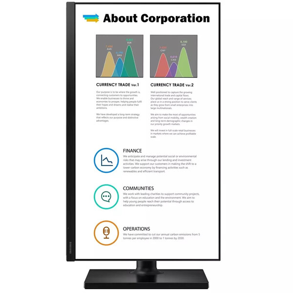 Superior design for maximum flexibility. The height of the monitor can be adjusted, and the screen can be tilted and rotated on its vertical and horizontal axis, so that you can look at it from any angle you want. The elegant and clean design brings style to your office interior. The monitor is compatible with the VESA wall mounting standard.