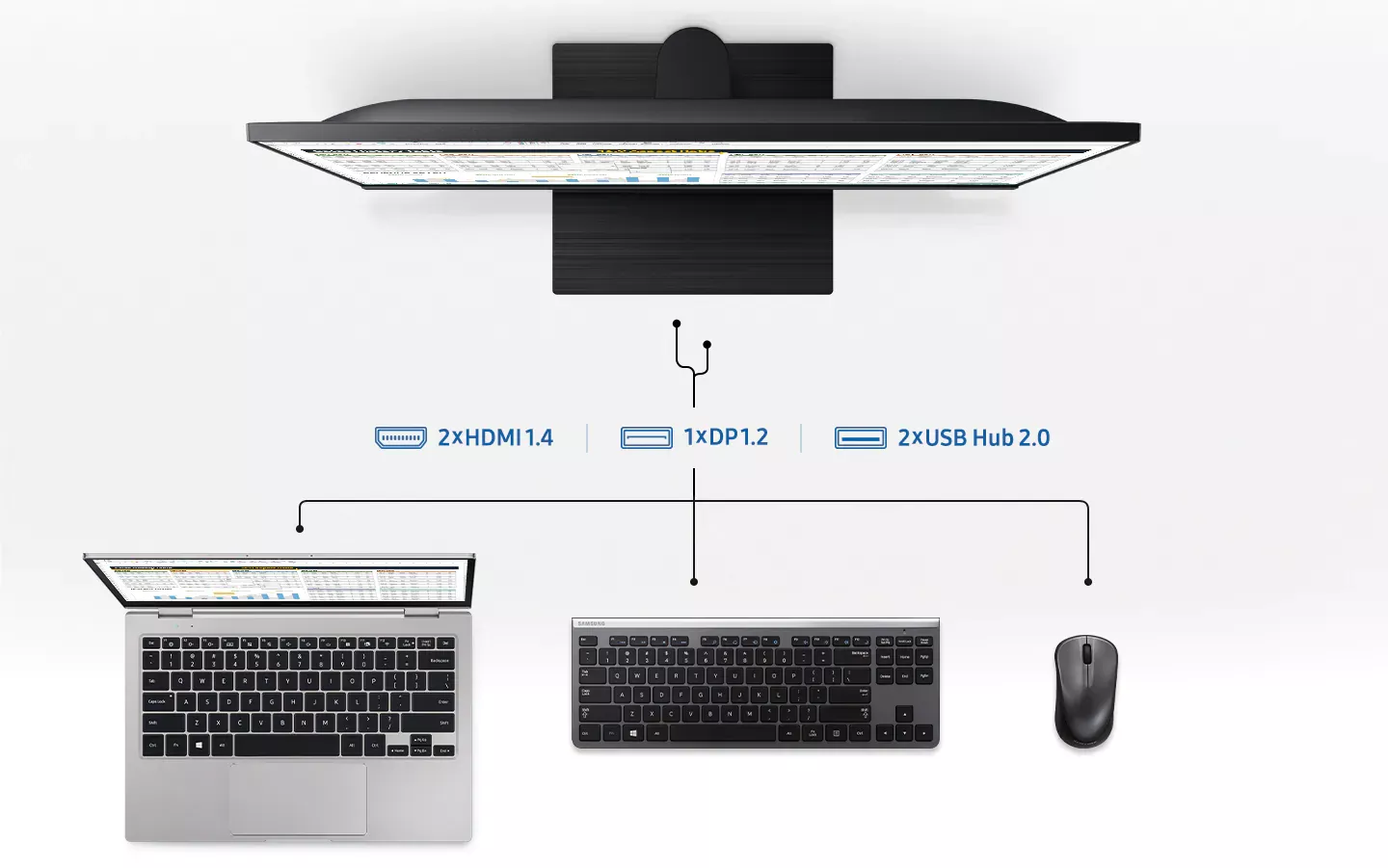 A variety of entrances brings greater convenience. Thanks to the two HDMI 1.4 ports and the display port, you have the convenient option of connecting several devices directly to the monitor.