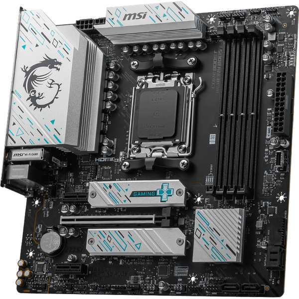 MSI B650M GAMING PLUS WIFI, mATX, AMD Ryzen Dual Channel DDR5 7200+(OC)MHz, 1x PCIe x16 slot, 2x PCI-Ex1 slots, 1x HDMI, 1x DP, 4x USB 5Gbps Type A, 3xUSB 10GBps Type A, 1xUSB 10Gbps Type C, 7.1 HD Audio, 2.5Gbps LAN, WI-FI 6E, BT, 3Y