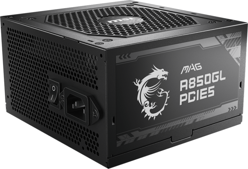 MSI MAG A850GN PCIE5, 750W, 80 Plus Gold, 120mm Fluid Dynamic Bearing Fan, Protections: OCP/OVP/OPP/OTP/SCP, Dimensions: 150mmx140mmx86mm, 3Y Warranty