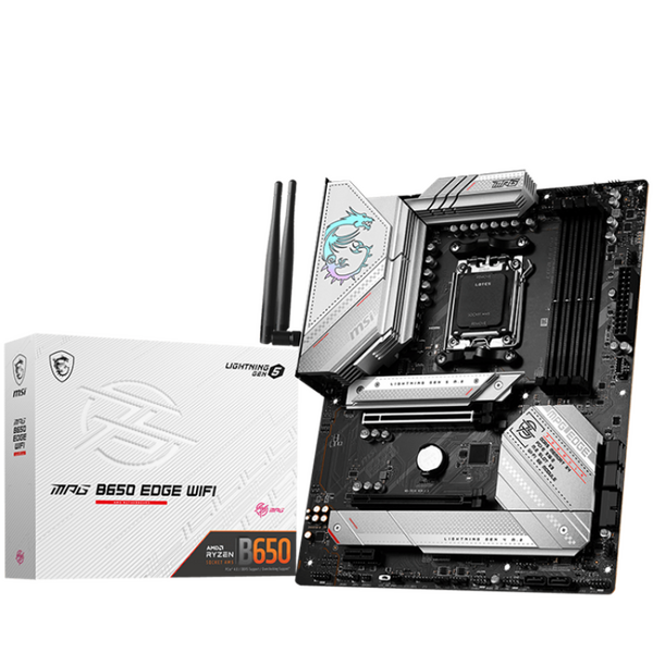 MSI Mainboard Desktop MPG B650 EDGE WIFI (AM5,4xDDR5, HDMI,DP, 1xPCI-E x16 4.0, 1xPCI-E x1, 3xM.2, 6xSATA 6G, 6xUSB2.0, 6xUSB3.2 Gen1 Type A, 3xUSB3.2 Gen2 Type A, 1xUSB3.2 Gen2 Type C, 1xUSB 3.2 Gen2x2, 2.5GLAN, AMD Wi-Fi 6E, BT5.2) ATX