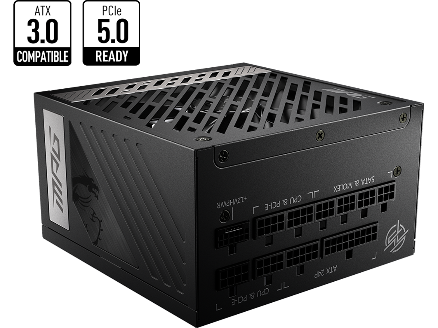 MSI MPG A1000GS PCIE5 Power Supply 1000W, 80 PLUS Gold, Dual PCIe 5.1 Cables, ATX 3.1, 135mm Fan, Fan Stop, OCP/OTP/OPP/SCP/OVP/UVP/SIP/NLO, Active PFC, Dimensions: 150mmx150mmx86mm, 10Y Warranty