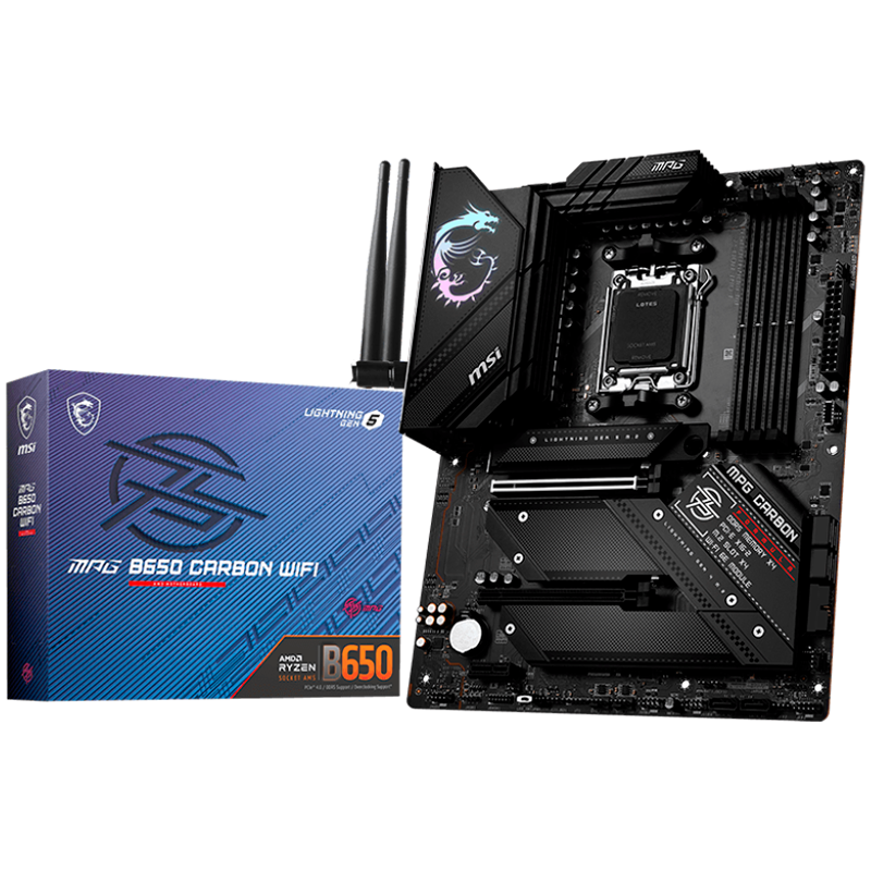 MSI MPG B650 CARBON WIFI, ATX, Socket AM5, 4x DDR5, 3x PCI-E x16 slots, 4x M.2 slots, 1x HDMI, 1x DP, 7x USB 3.2 Gen2, 1x USB 3.2 Gen2, 1x USB 3.2 Gen2x2, 2x USB 2.0, Type-C, 7.1 HD Audio, 2.5Gbps LAN, Wi-Fi 6E, BT, 3Y