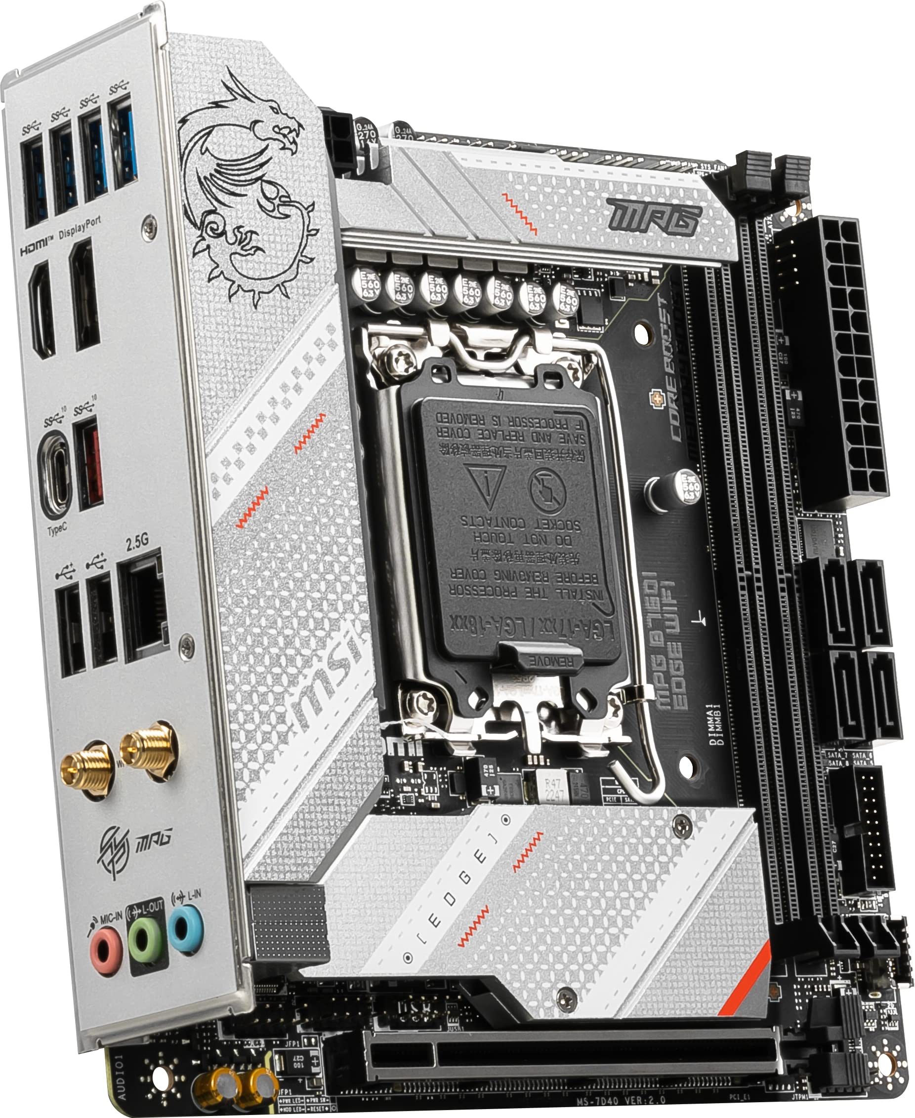 MSI MPG B760I EDGE WIFI , Mini-ITX, LGA 1700, Dual Channel 2xDDR5 7200+(OC)MHz, 1x PCIe x16 slots, 2x M.2 slots, 1x HDMI, 1x DP, 2x USB 3.2 Gen 1, 1x USB 3.2 Gen 2, 2x USB 2.0, Type-C, 7.1 HD Audio, 2.5Gbps LAN, WI-FI 6E, BT, 3Y