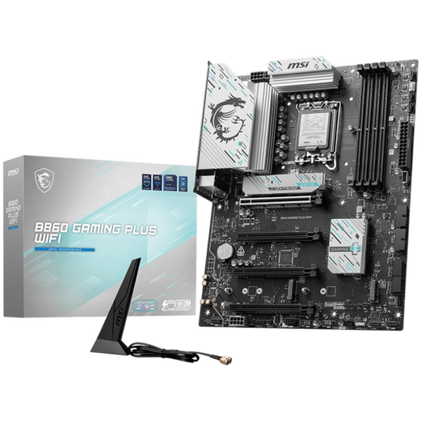 MSI PRO B860 GAMING PLUS WIFI, ATX, LGA 1851, 4x DDR5 Dual Channel DDR5 up to 8600(OC)MHz, 4x PCIe x16 slot, 3x M.2 slot, 4x USB 2.0, 2x USB 5Gbps, 2x USB 10Gbps, 1x USB 40Gbps Type-C, HDMI, DP, 7.1 HD Audio, 5G LAN, WiFi, BT, 3Y