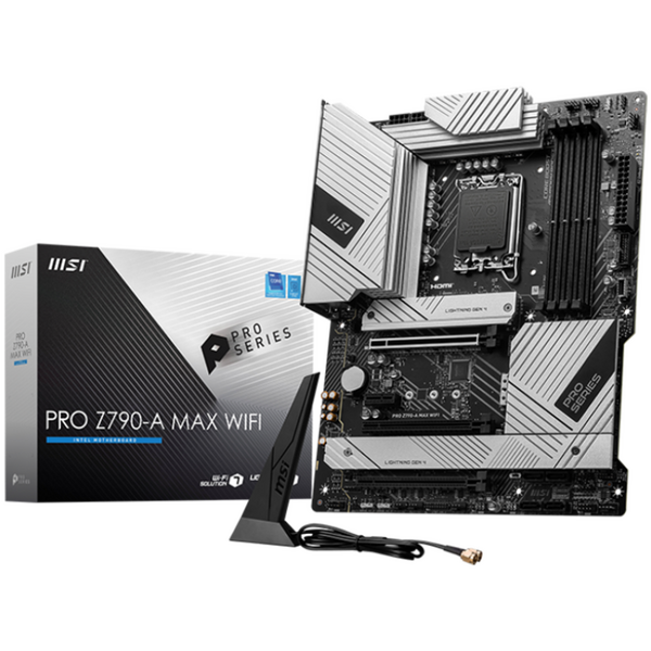 MSI PRO Z790-A MAX WIFI, ATX, Socket 1700, Dual Channel 4xDDR5 7800+(OC)MHz, 3x PCIe x16 slot, 4x M.2 slot, 1x HDMI, 2x USB 3.2 Gen 1, 4x USB 2.0, 1x USB 3.2 Gen 2, 7.1 HD Audio, 2.5Gbps LAN, 3Y