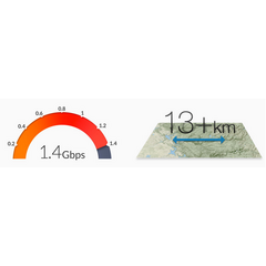 Two models deliver superior speed with spectral efficiency in the worldwide, license-free, 24 GHz radio band. The standard model, AF-24, delivers up to 1.5+ Gbps throughput at a range of up to 13+ km. The heavy-duty model, AF-24HD, provides more throughput at up to 2 Gbps and increased range of up to 20+ km. It also includes a more rugged exterior with a metal reflector, to protect against nature’s harshest elements.