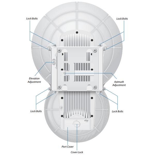 airFiber AF-24/AF-24HD provides a breakthrough in 24 GHz backhaul performance. Systems for millimeter-wave frequencies typically experience RF losses when part of the RF is lost in the switches and filters. The Ubiquiti R&D team eliminated such RF losses with separate yet integrated TX and RX antennas, so the link budget is robust and the airFiber AF-24/AF-24HD has better noise figure and higher transmit power efficiency.