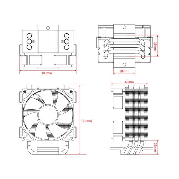 - Cooler material: 3×Ф6mm Heatpipe(Direct Touch)+Aluminum Fin
