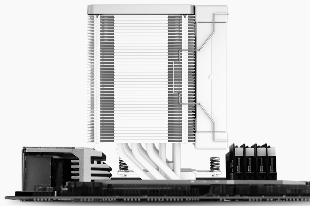 The angled offset heat pipe design offers clear access to your DIMM slots for better compatibility with tall heat spreaders and also shows off any RGB lighting. For quad-channel motherboards, the rear slots have a clearance of 45mm.