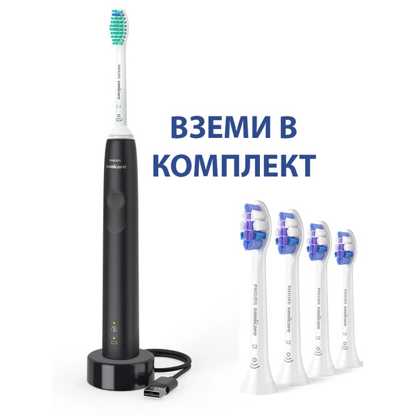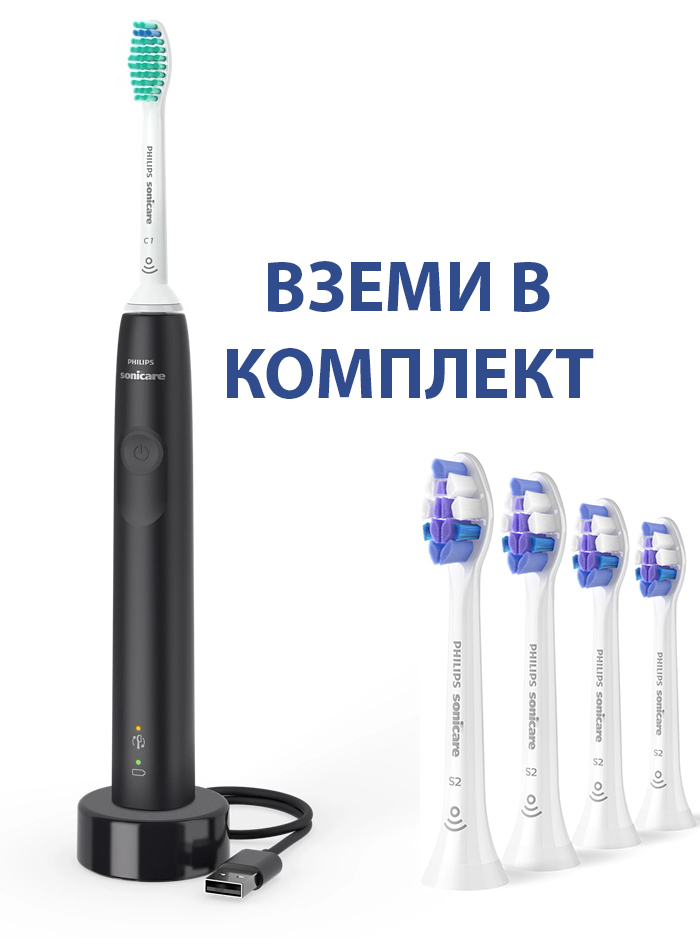 Комплект звукова електрическа четка за зъби Philips Sonicare 3100 Series HX3671/14 с 4 бр. резервни глави Philips Sonicare Sensitive HX6054/88