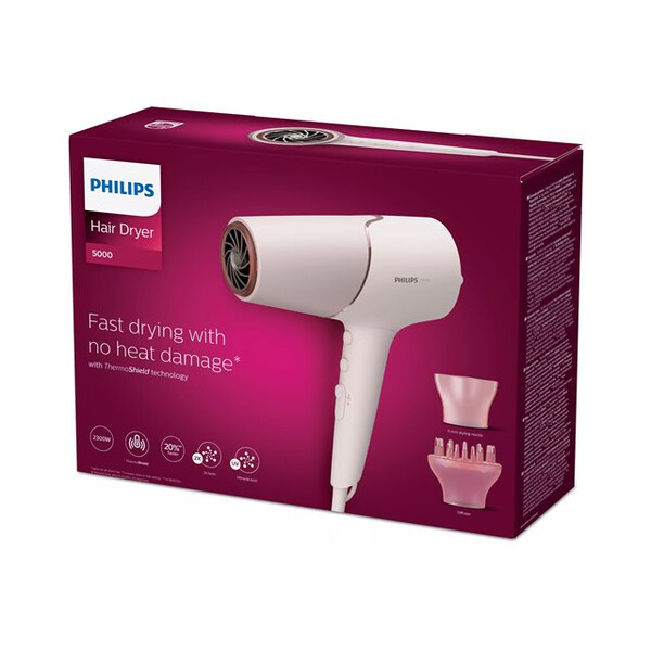 PHILIPS Hair dryer 2300W Series 5000 ThermoShield technology 6 heat and speed settings ionic care pink