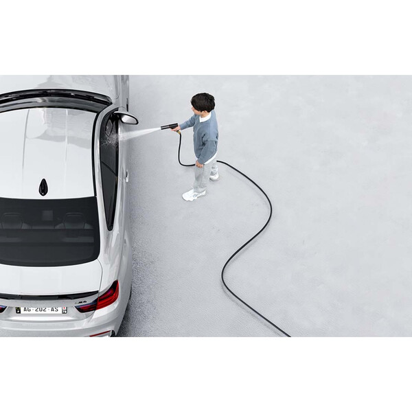 The rotary switch allows you to adjust the spray, so you can adjust the pressure and water stream to the surface being cleaned. The manufacturer has prepared five preset modes, with the help of which you can quickly wash the car body, clean the roof of the vehicle, remove mud from the tires, or gently wash the windows. The hose will also prove useful in the garden and other household tasks.