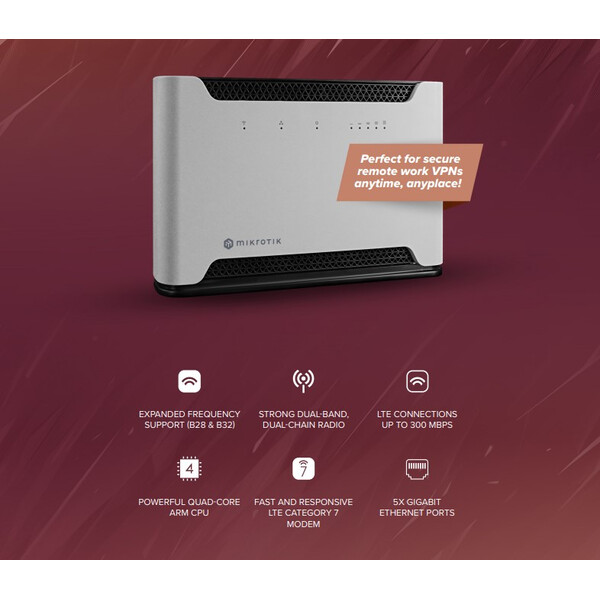 Chateau LTE7 keeps the same elegant design, powerful hardware, and flexible RouterOS features that made the Chateau series a global favorite – now upgraded with a faster LTE Category 7 modem, expanded frequency support, and a lower price than the previous LTE6 model.