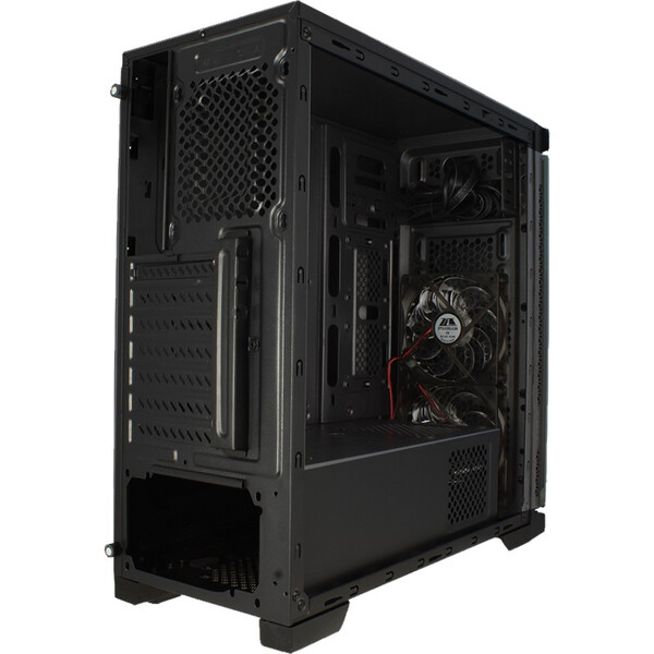 The 2x 120mm ventilator is provided with blue LED light for cooling, and a 1x 120mm fan with blue light is also located in the back of the box.