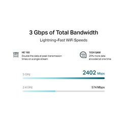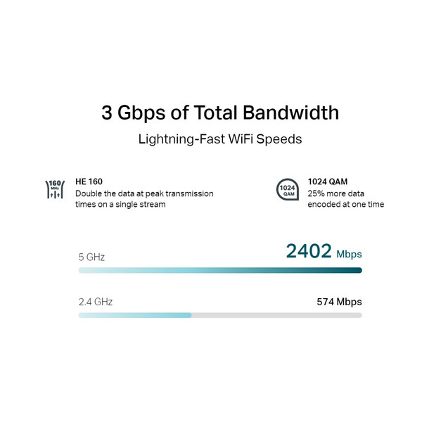 - Up to 3.0 Gbps WiFi 6 Speeds: 574 Mbps on 2.4 GHz and 2402 Mbps on 5 GHz