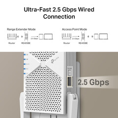 Connect the RE405BE to your router to convert a 2.5 Gbps wired connection into a high-speed dual-band wireless signal.