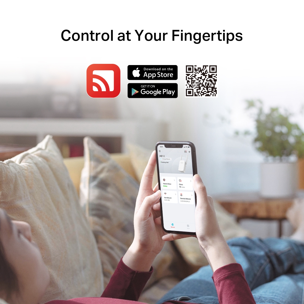 The ME12 wall-mounted range extender boosts coverage and strengthens the signal of your existing network. With speeds up to 300 Mbps, it supports smooth online gaming, large file downloads, and streaming anywhere at home.