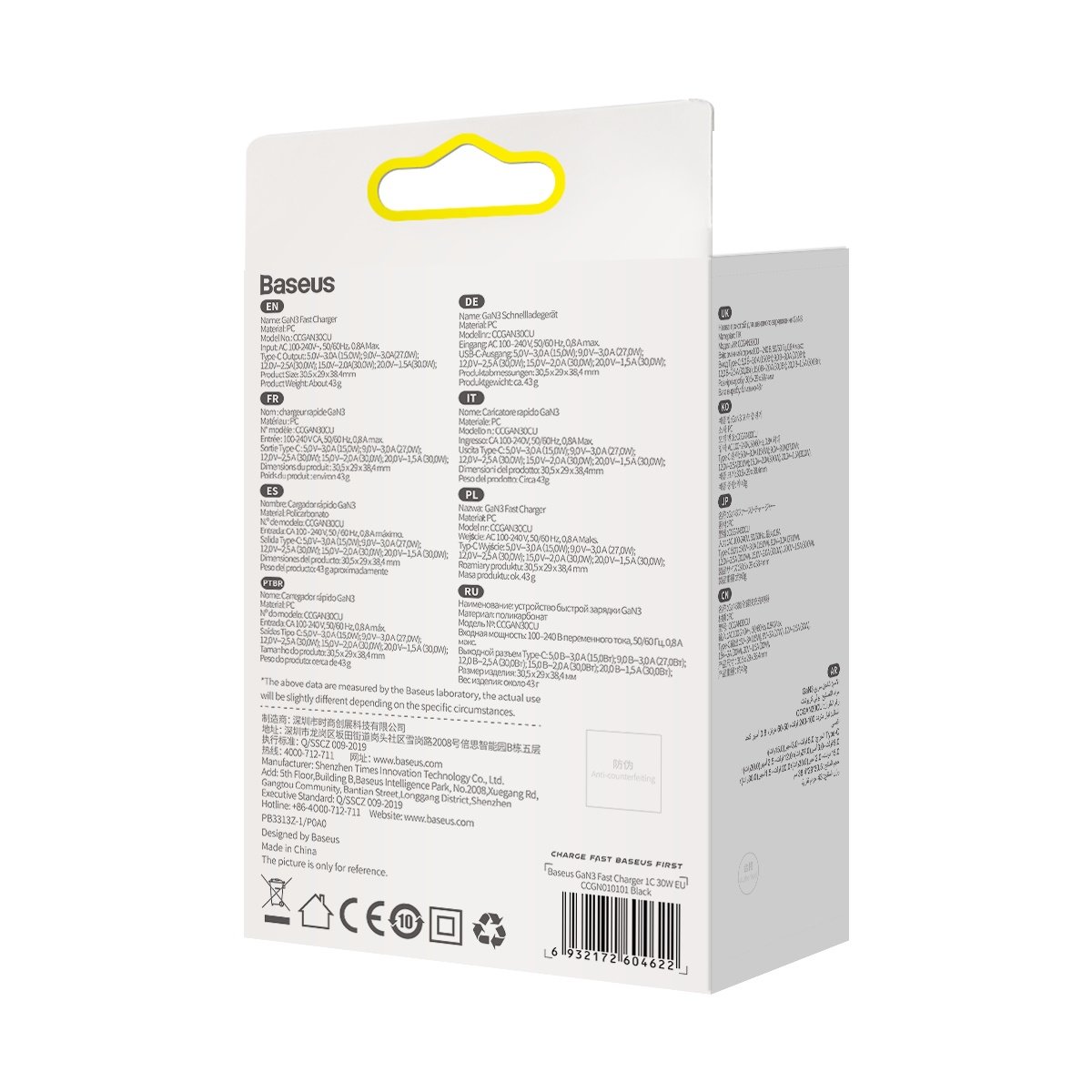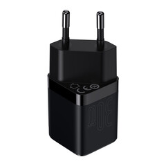 A fast GaN wall charger by Baseus equipped with a USB Type C port that allows charging with a power of up to 30W. Allows you to quickly charge devices in the PD (Power Delivery) standard. It has been equipped with many protections such as overheating, overvoltage, high voltage or overload. The electronic components of the charger were made in GaN technology, i.e. they are based on gallium nitride, not on silicon. GaN means better work efficiency and lower energy consumption.