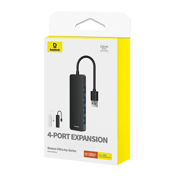 Baseus UltraJoy Lite is a hub equipped with 4 USB-A 3.0 ports, which offer data transfer at the level of 5Gbps, so you can quickly and efficiently transfer your files between devices and streamline your work or enjoy entertainment. You can connect various types of devices to the hub - a mouse, keyboard, hard drive, pendrive, and more. Each port is equipped with an independent chip that accelerates data transfer. For your safety, the device also has technology that protects against short circuits, overvoltage, and excessive voltage. The 15cm long cable has passed a bending test of 5000 bends. Its small dimensions mean that it easily fits into a laptop bag or even a pocket - so you can always have it with you.