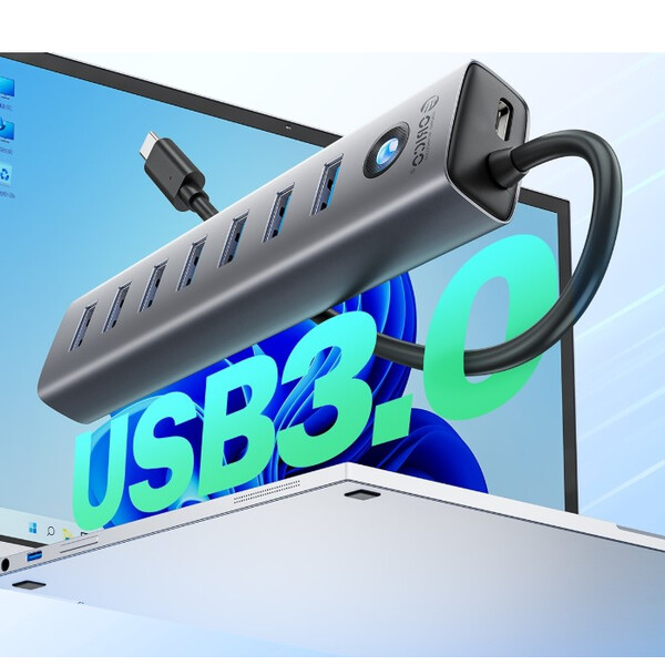 Orico Adapter Hub USB-C to 7xUSB-A 3.0 CL7U-U3-10- GY-BP-IP - grey