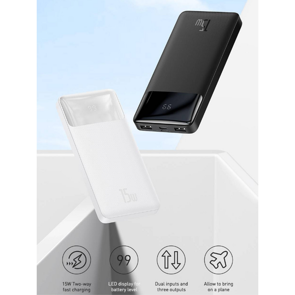 Baseus Bipow Fast Charging Power Bank 20000mAh 15W white (Overseas Edition) + USB-A - Micro USB 0.25m cable white (PPBD050102)