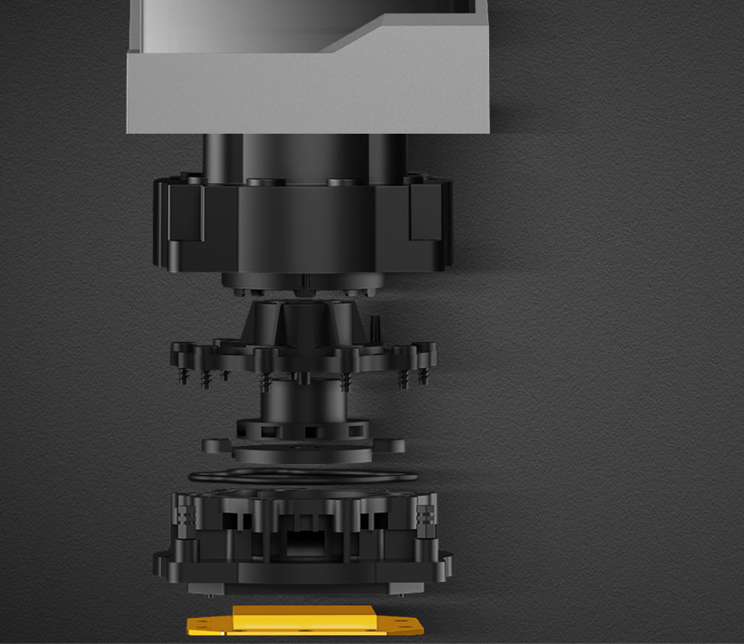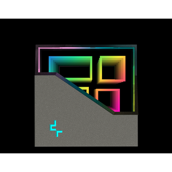 A three-dimensional infinity mirror surface is revealed underneath the top cover that offers a new visual experience through a multi-faceted geometric reflection.
