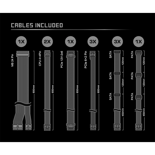 The Steel Legend series power supply unit offers options of 1000W, 850W, 750W, and 650W, available in "Steel Black" and "Steel White" ideal for mainstream systems. Certified for 80 PLUS Gold efficiency and Cybenetics Platinum & Gold rating, along with LAMBDA A+/A acoustic certification, it ensures outstanding energy performance.