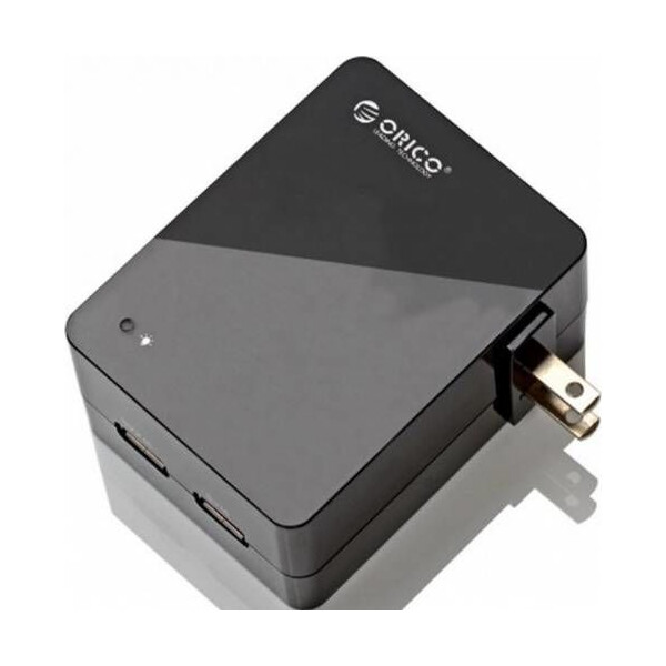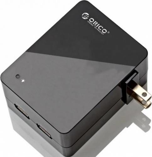 - ORICO Dual Port USB AC Wall Charger charges with retractable prongs.