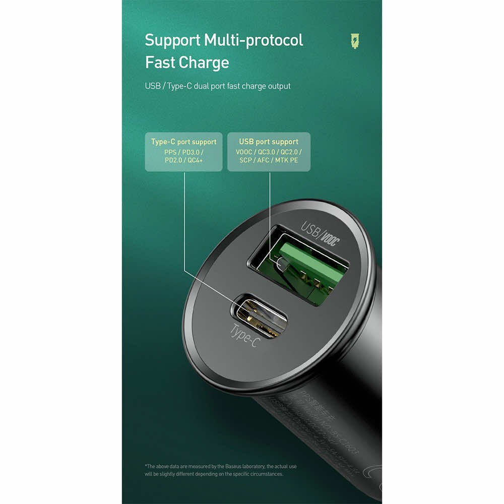Car charger Baseus CCYS-C01 PPS Smart USB-A/USB Type-C 30 W Quick